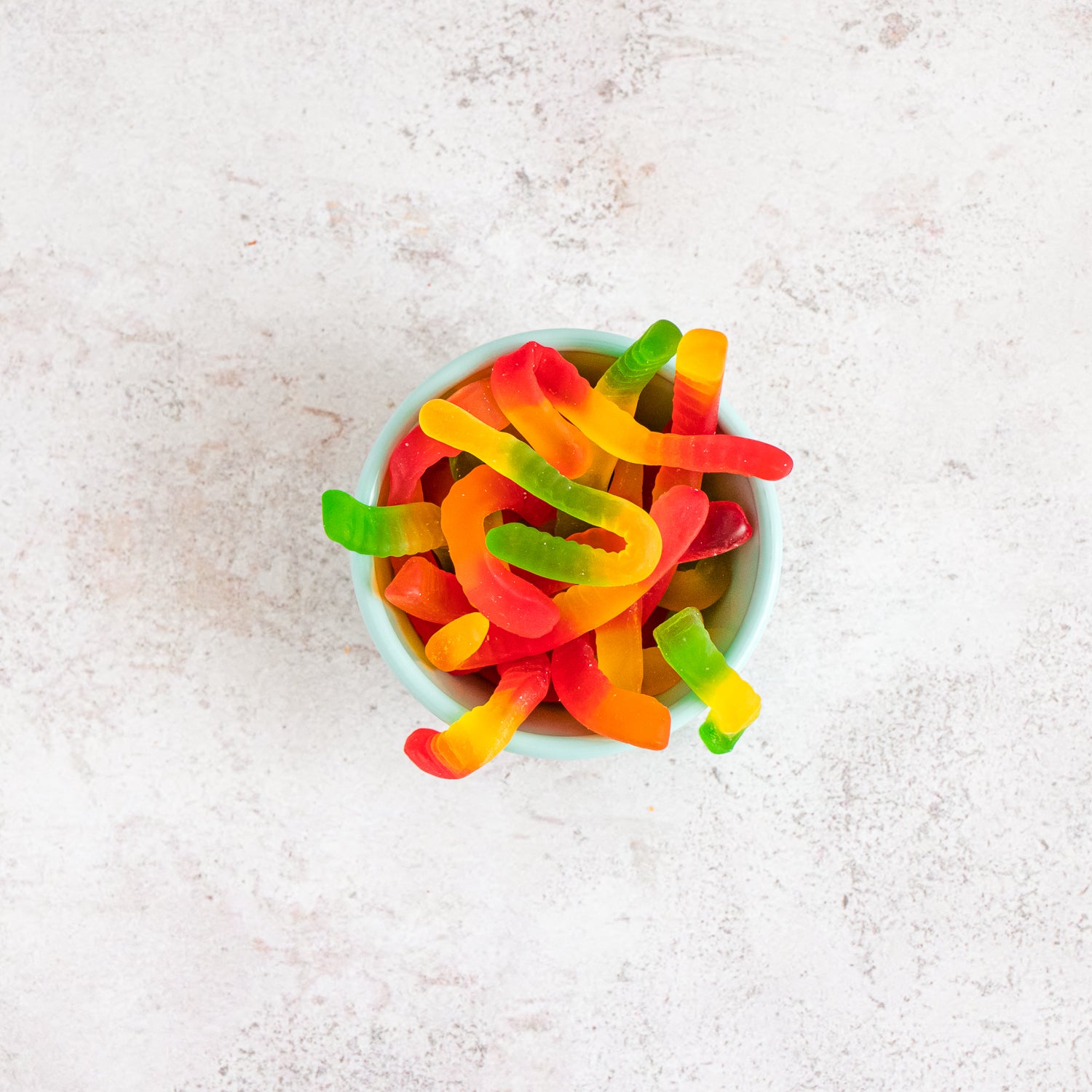 Gomitas en forma de gusano de sabores frutales.